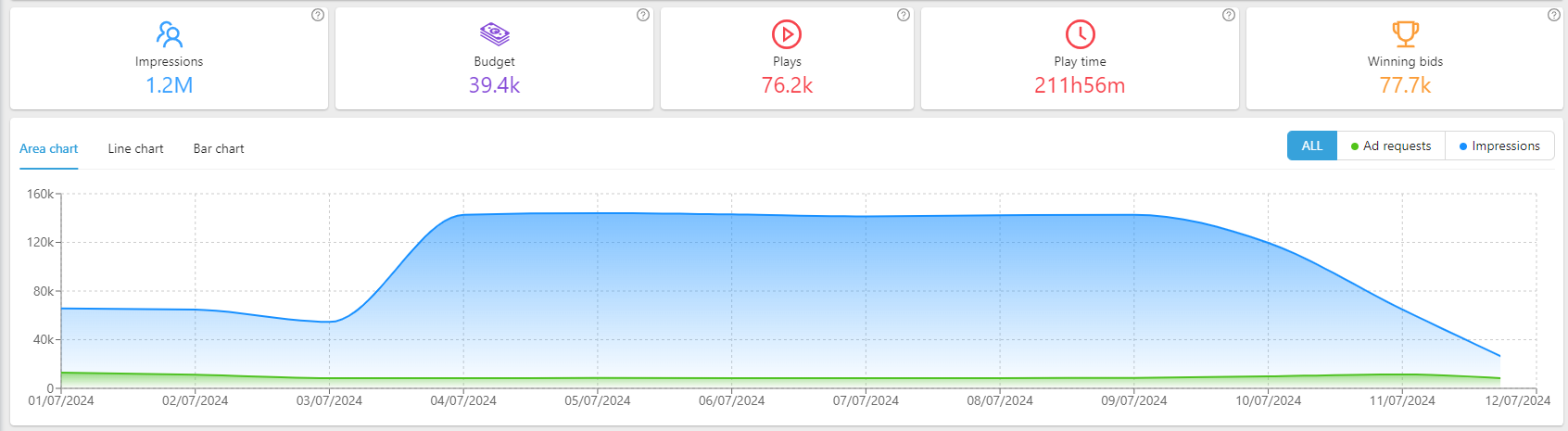 - Winning Rate: Percentage of winning bids relative to total bid requests.