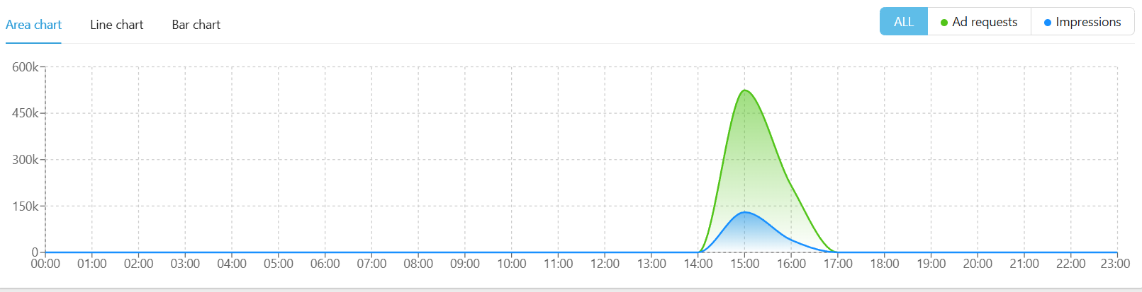 Low occupancy may indicate that ad requests are not being successfully converted into winning bids. To troubleshoot, check the following patterns:Pattern 1: Low number of bid responses + high win rate