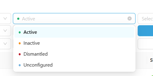 Use the available filters (Status, Network, Site, Channel, etc.) to narrow down the players you want to export (e.g. Active, Inactive, Dismantled, or Unconfigured).