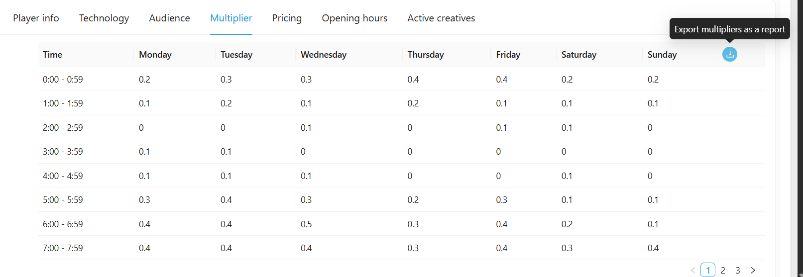 You can view and download multipliers at the inventory level via Bulk Upload.