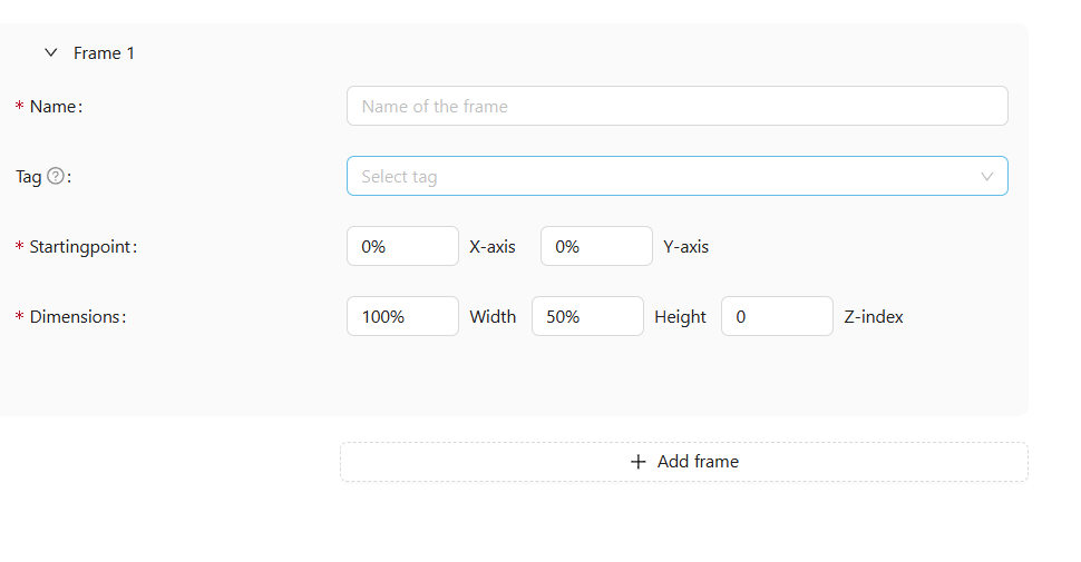 Starting Point – Set the X-axis (horizontal) and Y-axis (vertical) coordinates to position the frame.