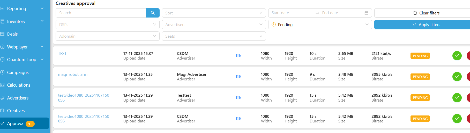 This opens the Creative Approval interface, where all submitted creatives are listed.